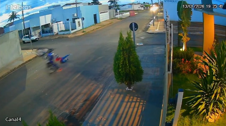Câmeras de segurança registraram um acidente envolvendo um jovem que empinava uma motocicleta e caiu, na região do bairro Tarumã, em Cuiabá. O vídeo mostra