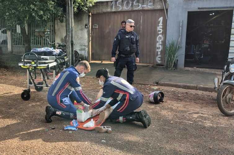 Uma mulher ficou ferida após um acidente registrado na Rua 5 A, no Residencial Mané Garrincha, em Tangará da Serra. A ocorrência envolveu uma motociclista