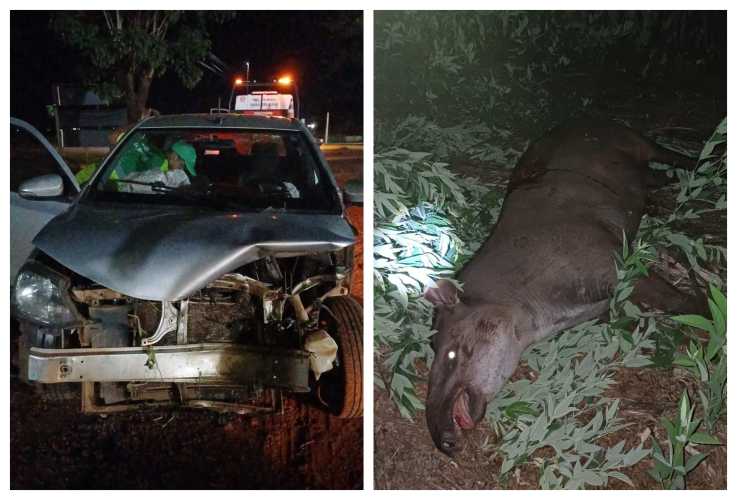 De acordo com as informações, o veículo seguia pela rodovia quando o animal silvestre atravessou a via. O condutor não conseguiu evitar a colisão e acabou atingindo a anta.