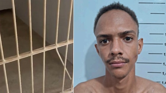 Imagens registradas mostram que o detento rompeu uma das grades da cela onde aguardava, criando uma abertura pela qual passou para alcançar áreas comuns do prédio e, em seguida, deixar o local.
