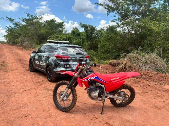 Segundo o boletim de ocorrência nº 2025.337258, os policiais receberam informações anônimas indicando a presença de uma moto abandonada em um trecho de mata da região. Após buscas, a equipe encontrou uma Honda CRF 250L vermelha, parcialmente coberta por galhos e folhas.